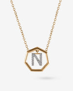 Inspired by the graceful swing of a pendulum and our standout heptagon design, this "Spell It Your Way" collection expresses what truly matters to you. Made of 18K gold-plated Brass, these alphabet n necklaces showcase meticulous craftsmanship.
